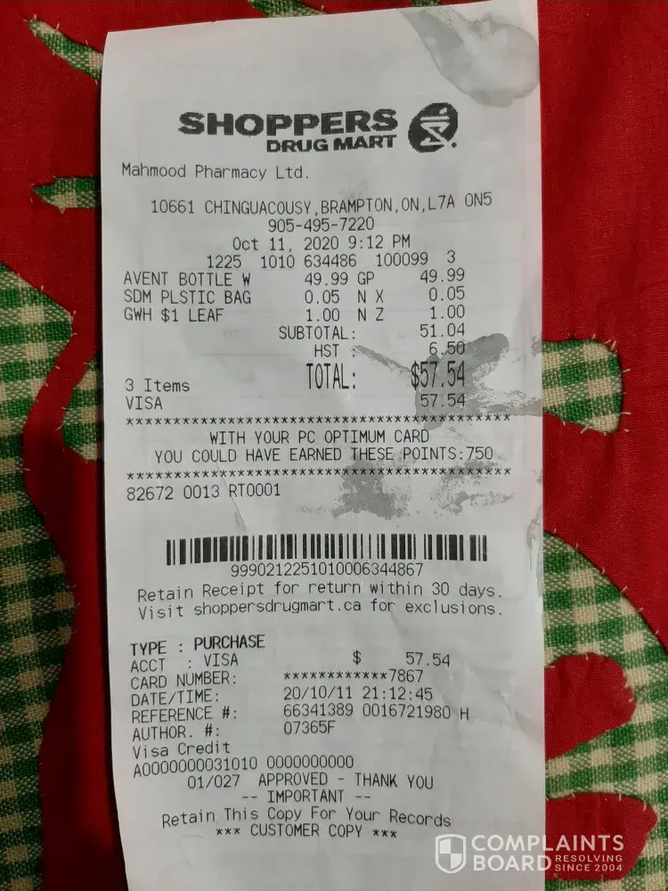 Both shoppers and pc optimum have not responded to many inquiries and refused to help. I have sent numerous emails and tried to call (no one should have to stand for wait times of over 20 minutes). Again deplorable customer service.