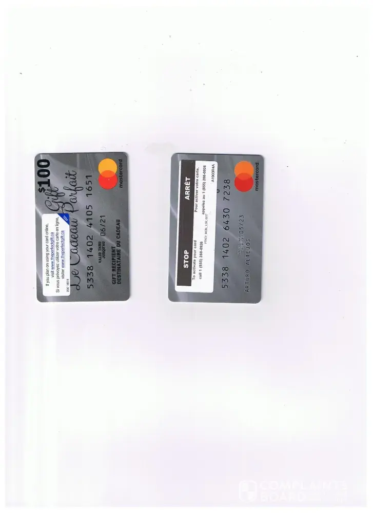 Master Card "Gift Card" $100.00 value was declined when used. Manager Ms J was notified today and she said "i cannot do anything, you have to phone them (MC) or you can go to our website complaint section at Shoppersdrugmart.ca". INCIDENT My Son's and daughter's b-day gift card called a MASTER CARD Gift Card (Le Cadeau Parfait) price.d for $100.00 ea...