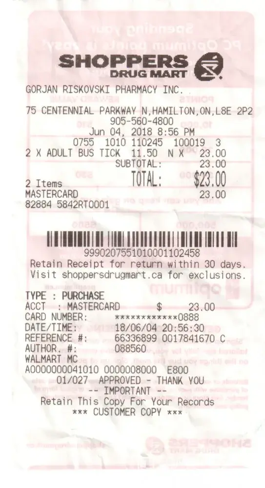 On 2018-06-23 I was at Shoppers Drug Mart in Ottawa at 1180 Walkley Road at 12:52 purchasing items with cashier #42478 and #42479