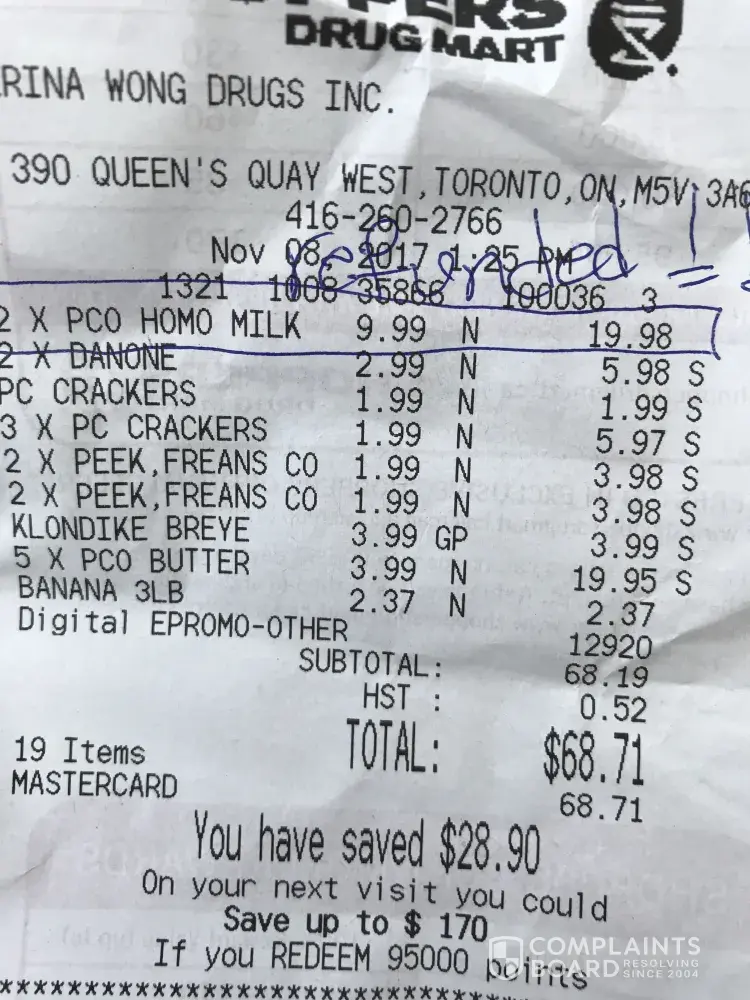 I received my apology and full refund from the manager at the local shoppers and the head office in Ontario.