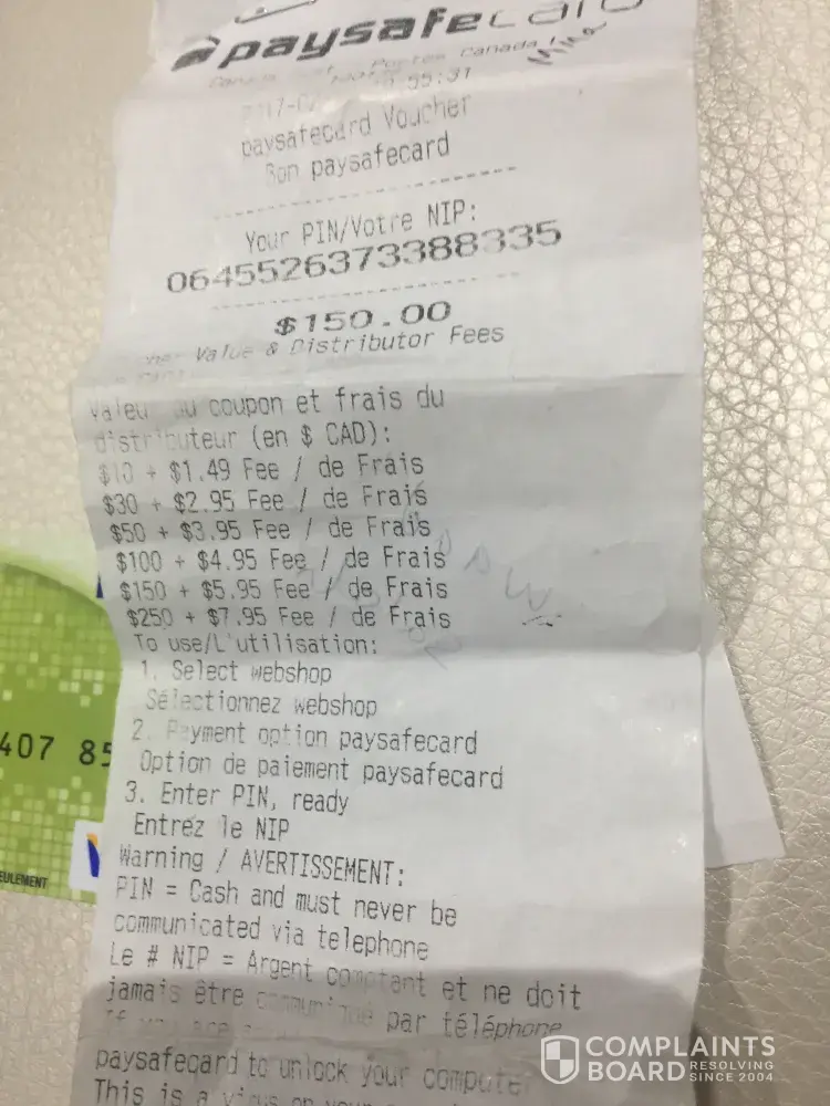 I purchased a card for 150 dollars and paid 155.95 dollars . The difference should be the fees . I found out the card was expired march / 2015, when I did the purchase on feb/15/2017 . Pat safe card ! It's not safe at all . Purchase was done at shoppers drug mart billshire gate in Mississauga, very bad customer service . I have been trying to resolve this matter since then with no luck, I never been through horrible customer services in my life as I have experience in this store, I was trying to resolve the issue through paysafe card customer service since that time . I finally got my refund to day for only 132.50 dollar, I don't agree for any fees towards this transaction since I did not use the service at all and I did not choose to get expired card ! I even have to ask for something towards my suffering going through this and my interests for over a month time fram I have been waiting for this refund, I am waiting for your response towards this matter A.S.A.P . Before I take my next step by filling a legal complaint against the company to the business bearu . My contact information is : [protected]. My name is : waad salah . Thanks