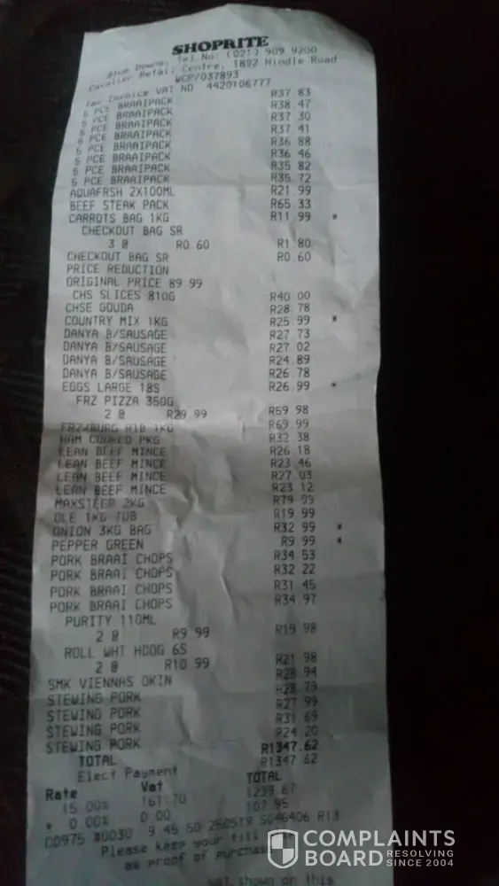 On the 07/07/19 05:20 I bought groceries of almost R2054 food and 2electronic goods a straightener and haidreyer was among the things I bought.
