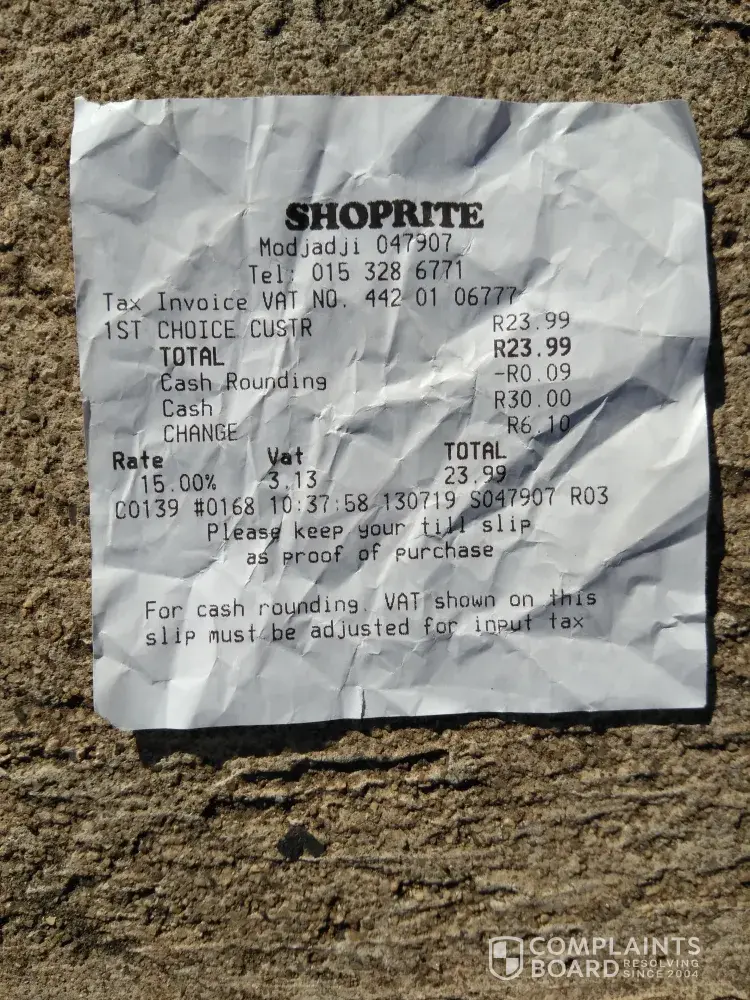 Purchase made: 06/07/2019 Shoprite Southdale 457 R1564.15