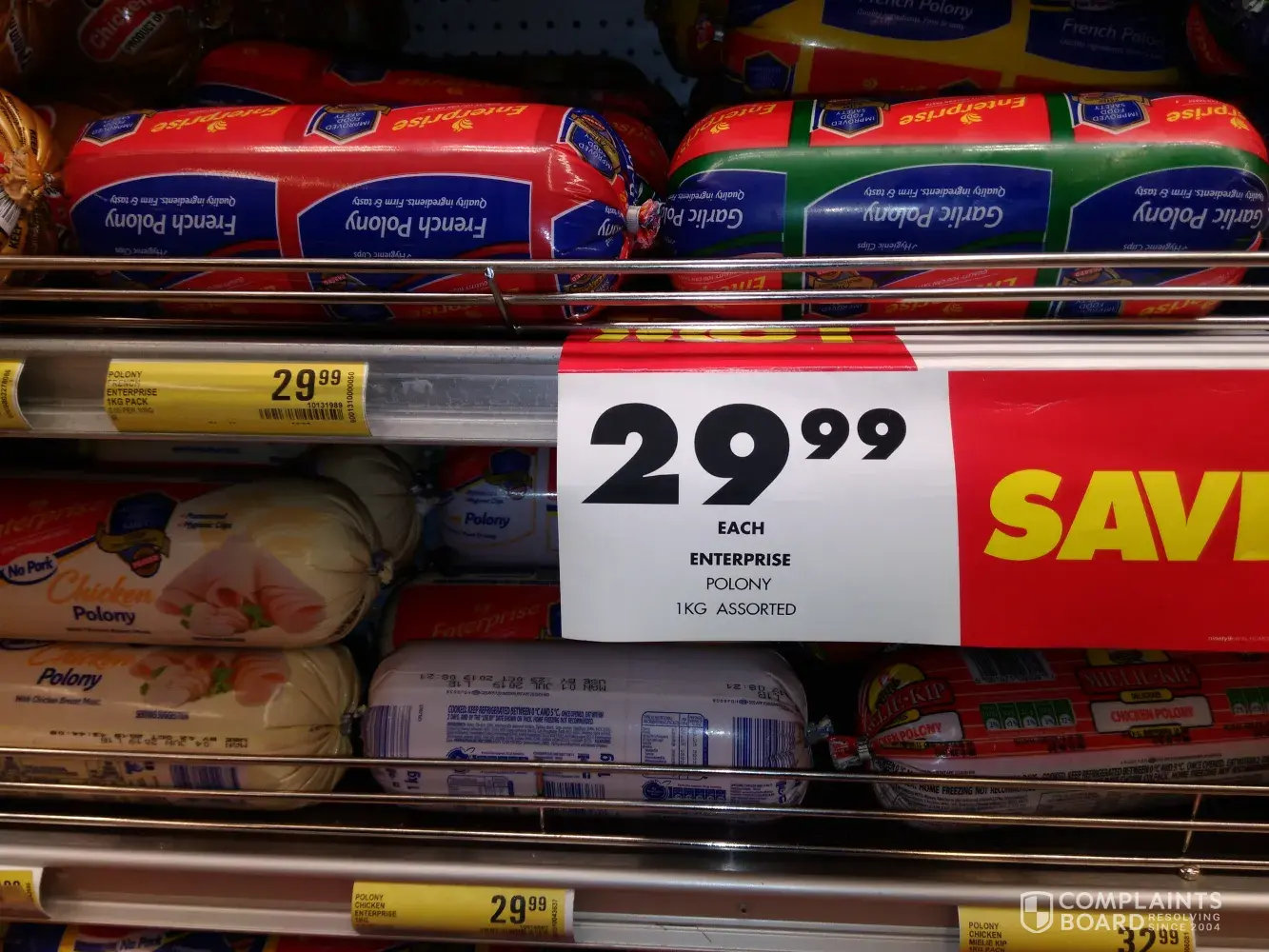I visited the Lyttelton shoprite on 3 Aug 2019, there was a board advertising the enterprise polony 1kg for r29.99. I took 2, got to the cashier n it scans for r59.99 instead of r29.99 She called a supervisor n she says that the special excludes this specific polony, which was the enterprise chicken polony. I asked why n she tells me that this polony was made from chicken breast meat. I was furious. We debated back n forth, then decided to go to the polony section to look at the board displayed. It simply stated "enterprise polony R29.99 1kg assorted". Firstly my time was wasted, debating over what was clearly an error on the stores part. Secondly not one of the employees I spoke to apologised for the error or fault on their side, they all insisted I'm reading the sign wrong. She even went to the extent to say that the board is placed away from the polony I took. Even if the board was placed by the eggs it does not change what it says, saying assorted means all flavours under this brand. Then she says no the polony I took is a premium product, I asked her to show me where on the packaging does it say premium she was not able to. I'm disgusted with the customer service we experience at this store time n time again. This is not the first time I've experience false advertising at this store. This needs to be taken up or I will take this further