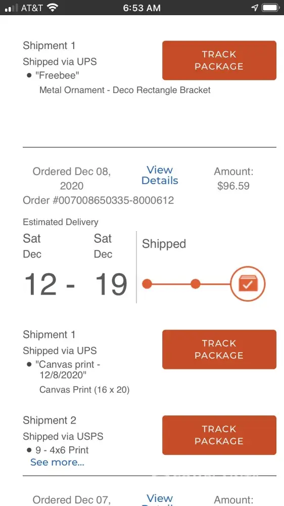 For Christmas this year, I got my family together for family pictures taken and planned on giving my parents these printed memories. I ordered a variety of pictures and different sizes in early December. At the time Shutterfly was promoting free shipping on orders more than $79. This Christmas gift order for my parents qualified for free shipping. When placing the order the estimated delivery was days before Christmas- so I was a happy customer at the time of making the purchase. The estimated delivery date past and so I checked on the tracking number. Unfortunately there was no recent update on the package status. I realized that this is a busy time of year for the delivery companies so i waited a few more days before reaching out to Shutterfly. I planned to contact Shutterfly before work but that was impossible due to the long wait. So I tried to send them an email but that idea also failed because they don't have an email for customer service. Once I finished with work that day, I decided to try the customer service chat. To begin with, I was customer #119 in line for the chat. I waited a good 20 minutes before chatting to a representative about my missing order. I was told that my order technically isn't missing since there was a shipping update within 3 weeks. I was not satisfied with this customer service interaction. Today is Christmas and there has still been no update on my shipping status. If these pictures don't come soon, I will request a refund and order these pictures elsewhere.