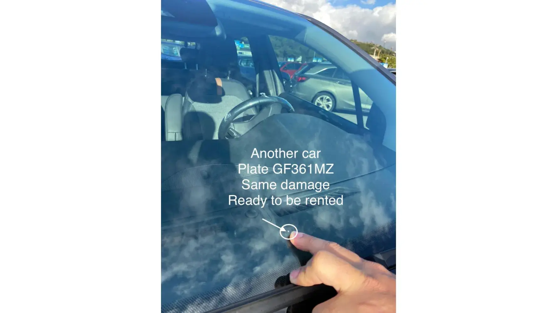 Below I have attached images and videos of the car rented by me and another car that had the same damage and was ready for use.