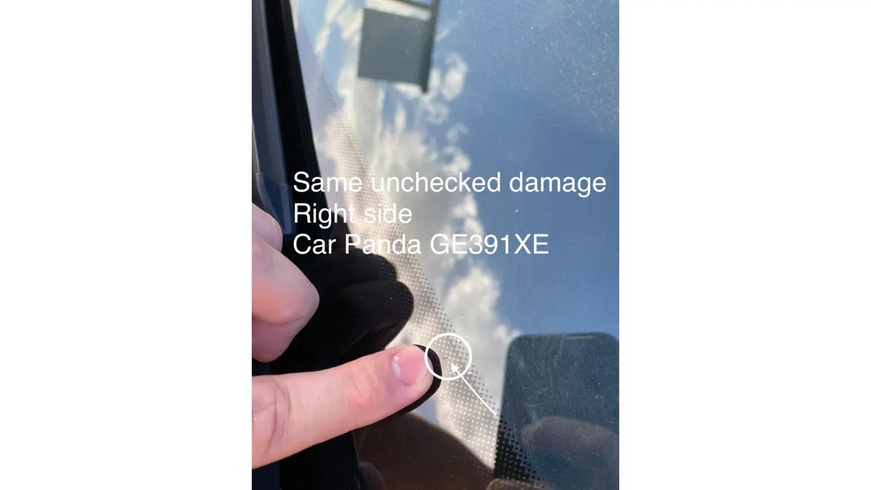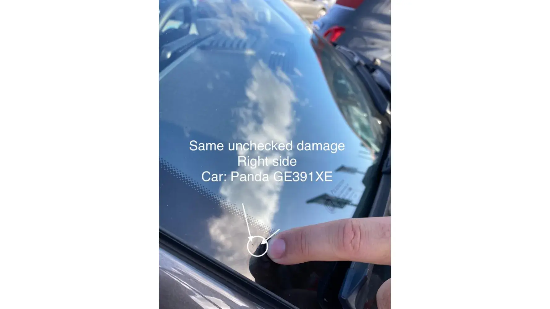 There is a note in the inspection report where it is alleged that I did not wait for the check to be carried out, however, at no time did any employee make this request, and it is not possible to prove in any of the parts that the damage was caused by me, as I reiterate, there is no photos of the immediate prior to the rental of the car, proving that there was no damage to the windshield.