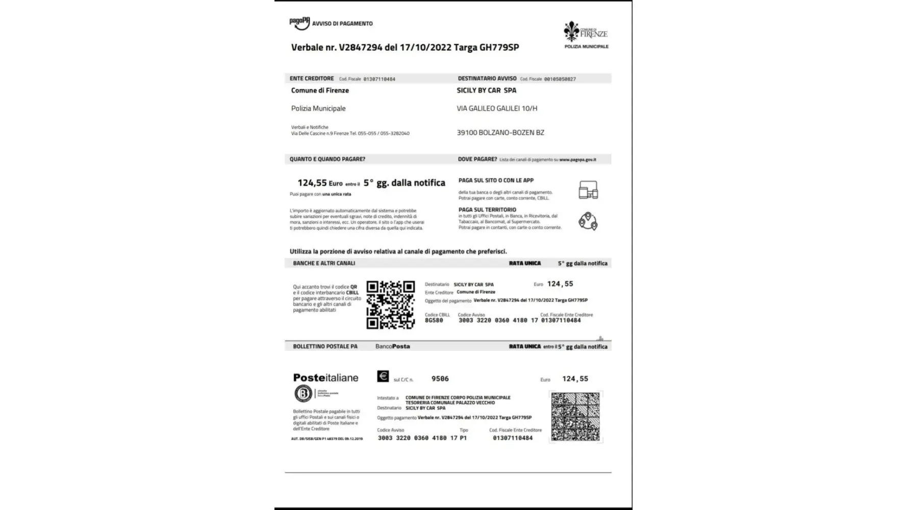 Sicily By Car double charge for handling a traffic fine