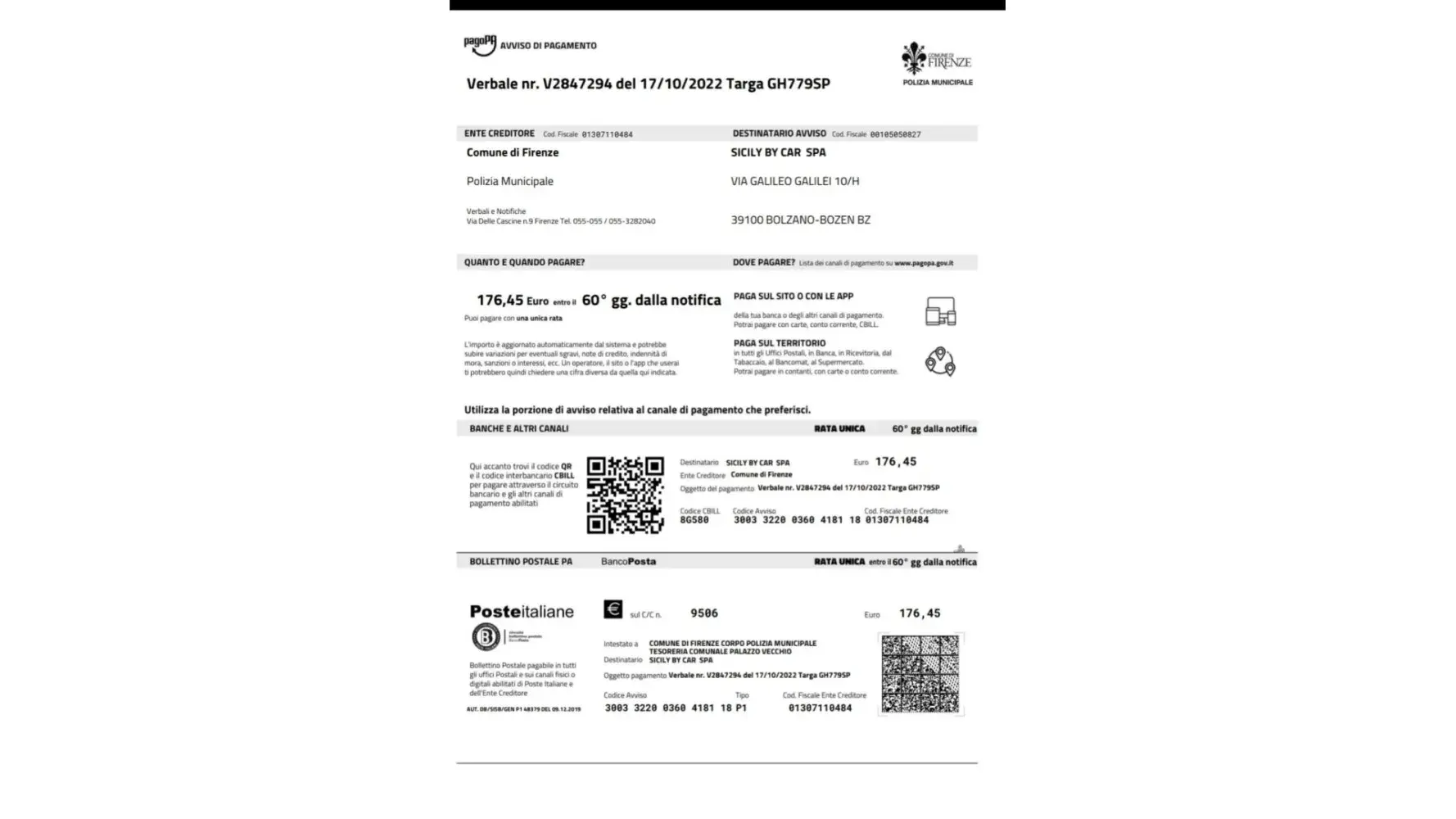 I recently recently received an email on Wed Oct 19, 2022 about an apparent traffic violation on July 14, 2022 in the Commune of Lecce.