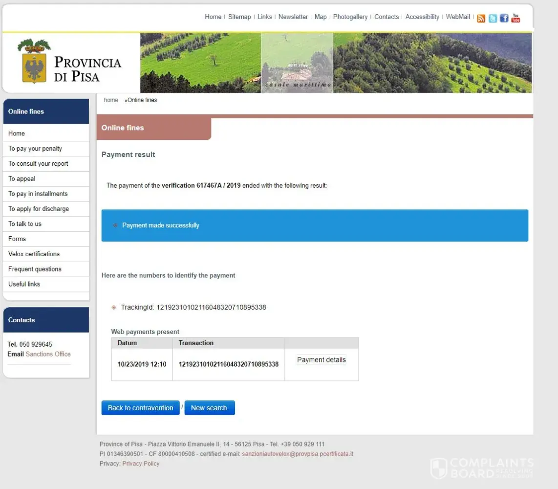 Accertamento Di Violazione n. 2562068/2019/P Pr. 231202/2019 I recently recently received an email on Monday, January 10, 2020 about an apparent traffic violation from November 9, 2019 in the Commune of Pisa. I am not sure what the violation was for because it is all in Italian. I drove through Pisa and parked for a short time in an authorized spot. There...