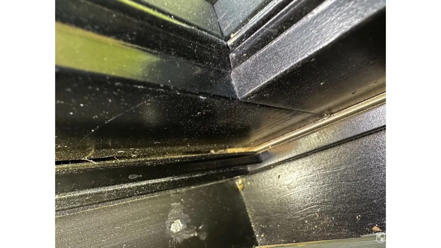 It’s important to note it’s not an installation problem, it’s a manufacturer defect on the sash. Something is missing inside the window— you can shine a flashlight through the sash corners into a dust filled gap