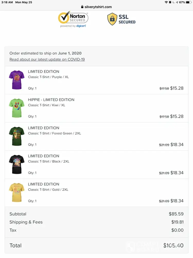 Thanks! Don't give up, I FINALLY received all five shirts several days ago, I love them, and won't hesitate to order from SilveryShirt again. I determined the hold up was on our end because the new postmaster general of the USPS has cut overtime and ordered Postal employees to slow down and hold mail. I'm still waiting months for other deliveries.
