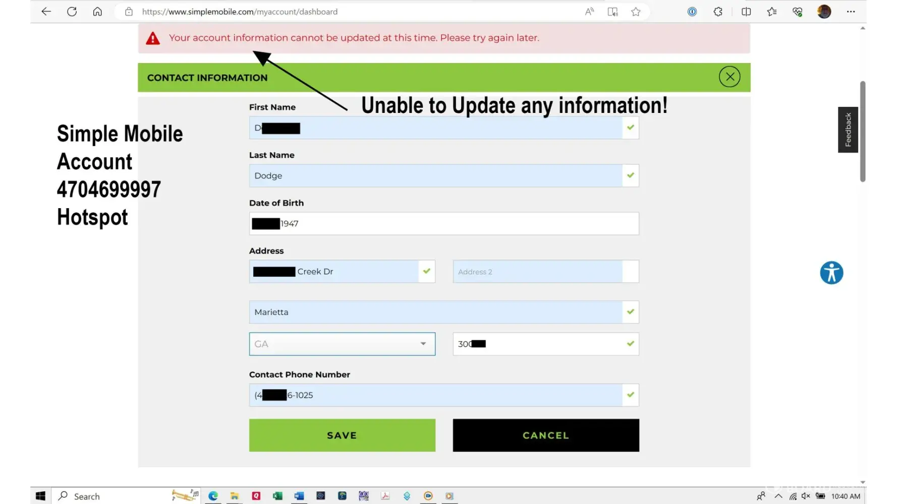 They each asked me to change some information on my Profile on the website, but per the attached, I got the message "Your Account Information cannot be updated at this time. Please try again later." I still get this message today, August 4, 2023.