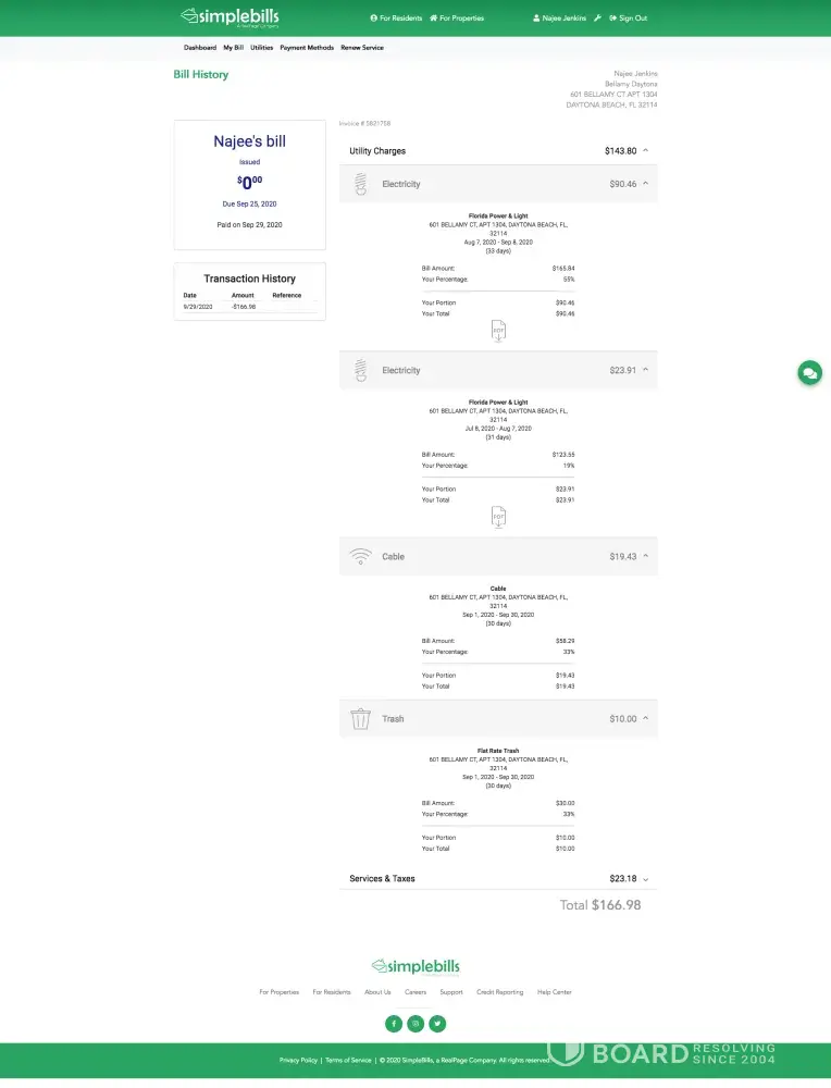 The response time by SimpleBills billing department is more than slow. The customer service person said they sent correspondence to The Standard, but the Standard said they did not. The Standard reached out to them and told them the roommate has lived there and owes half the bills. I expect them to refund us and charge the roommate her share in Sept, Oct, and Nov of 2020 and for the rest of her contract with the apartment complex. I'm not going to hold my breath, because I have called and the billing department doesn't talk with customers, only the customer service department who know less than nothing about what is going on.