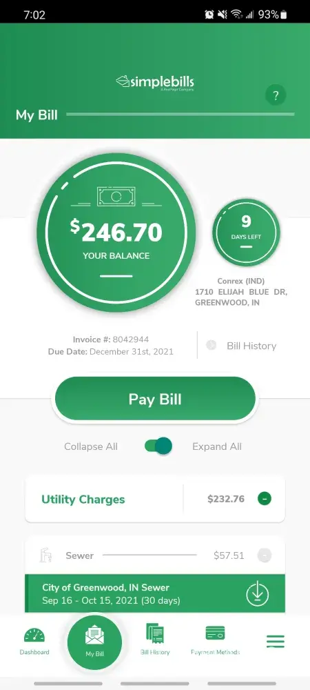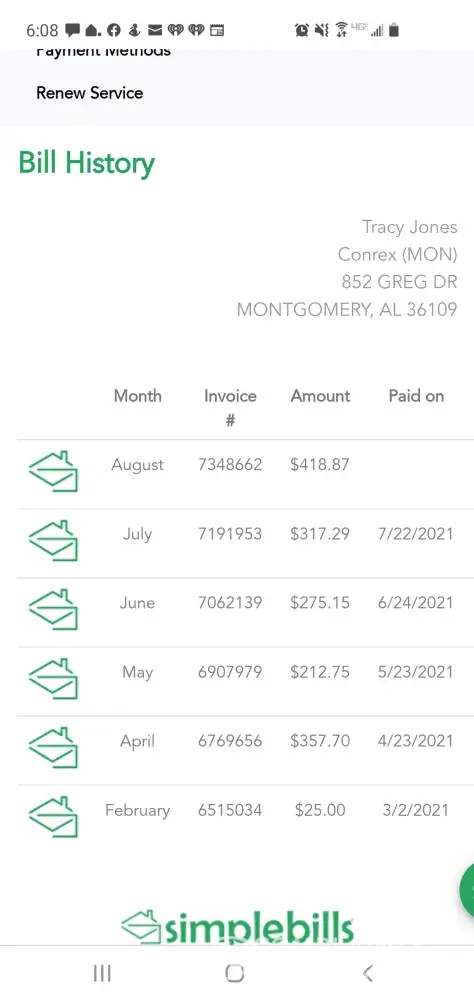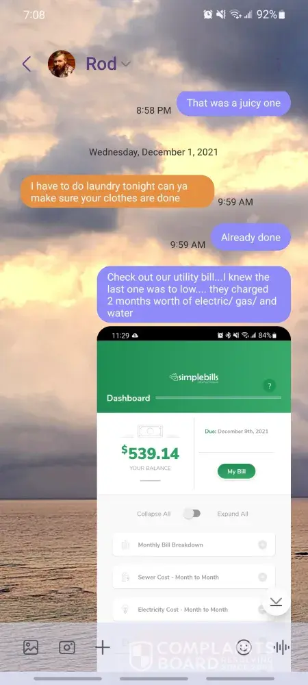 Like others on here I was forced into taking on simple bills by Conrex rental company when I renewed my lease. Not only did I have to pay a $25 charge to set up an account with simple bills I also have to pay $10.95 every month to use simple bills (again had no choice in using simple bills or not per the new lease). The new lease stated 8/1/2021 and I did not receive my first bill from simple bills till 10/21/21 and it was due 10/30/2021...9 days to pay. Then I received nothing in November to pay. On 12/1/2021 I receive a massive bill for $500+ due 12/9/2021 labeled November. My husband called simple bills to inquire we didn't get a bill in November and why we have only 9 days notice to pay again? There answer was that's the way it is and are you going to make a payment now. Here we are 12/22/2021 and I receive another bill for $200+ due 12/31/2021 for December. You better bet that I am contacting the BBB and Attorney General along with a consult with my lawyer.
