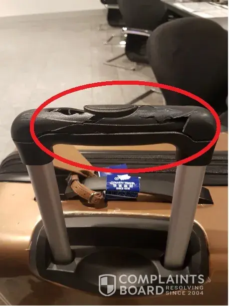 Had reported to the Airport claim counter immediately, the staff just use a walkie talkie to speak to another "person" and told the person the luggage is working fine even it had a cracked handle.