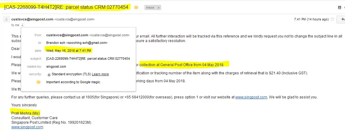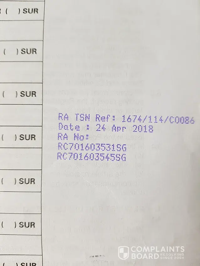 I have also contacted singpost and suppose to get back to me. Also no response from your side since 21 May 2018.