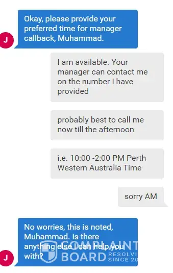 In the chat on 11th October I was told that the manager will approach me via a phone call but it was never done. Please see the screen shot attahced.