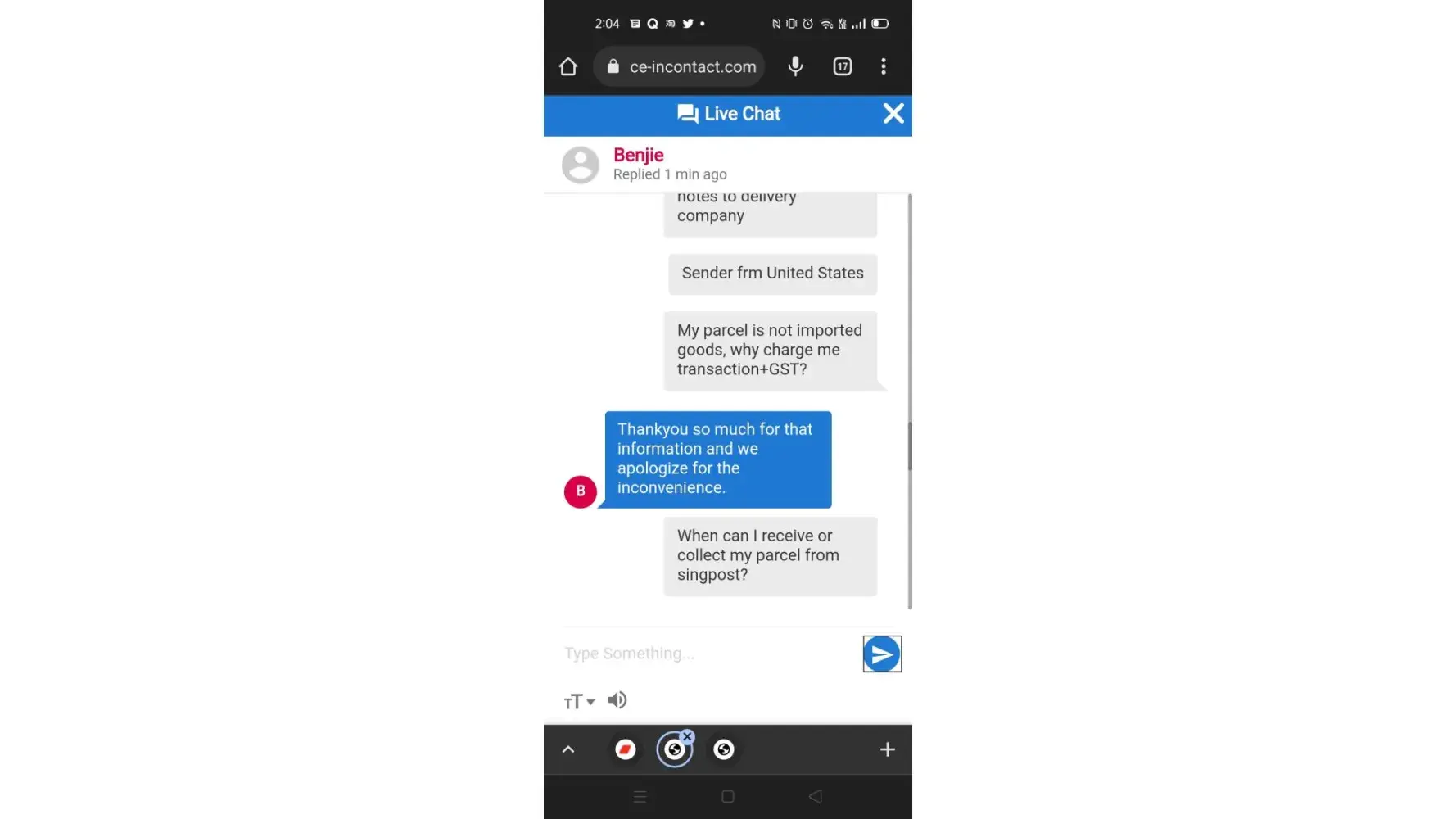 27 June 22) On the app, package was in Singapore. Checked GST, calculated wrongly.