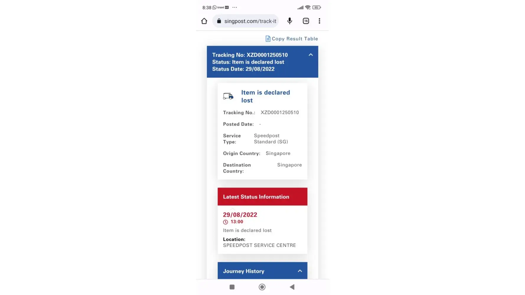 Desired outcome: Original report from Singpost to verify the informationMy H/P: 96464158Email: jason.[protected]@gmail.com
