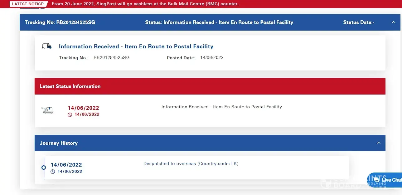 Singapore Post (SingPost) Package not receive (LB302955613SG)