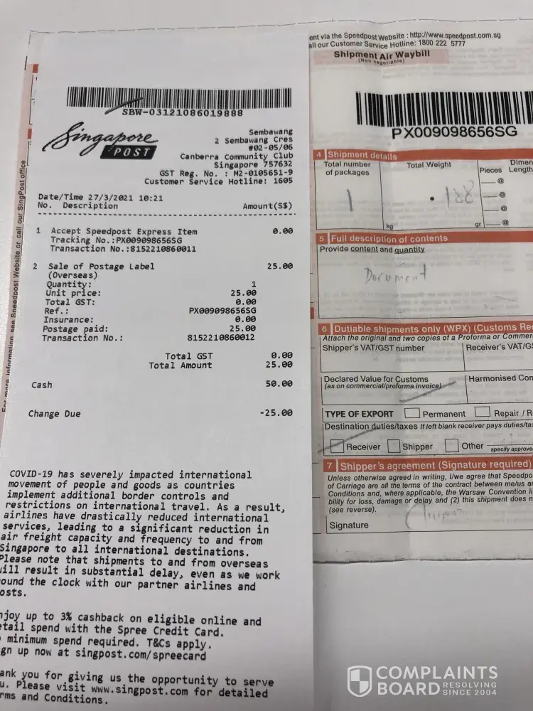 My regret things in my life is use Singpost-Speedpost services to send important document!