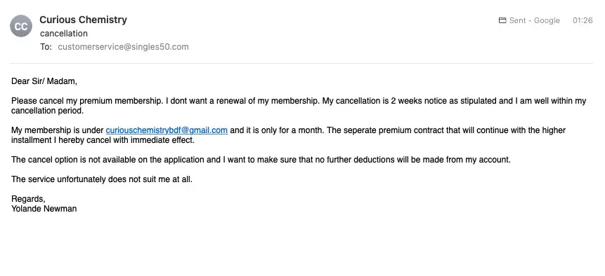 Want to cancel subscription with single50. There is no option to cancel under my profile. This was for one month but they keep taking R999 out of my credit card. User name/email [protected]@gmail.com.