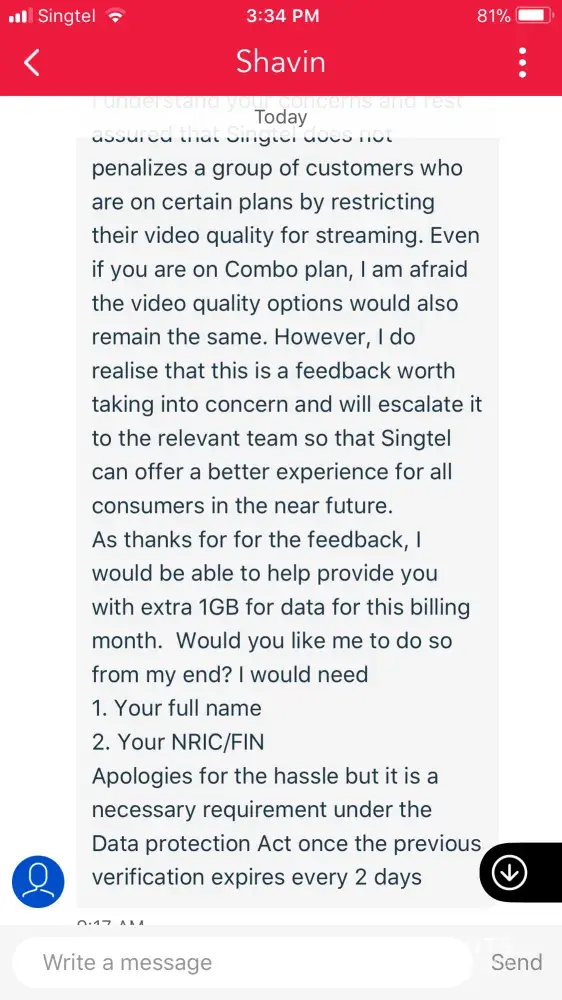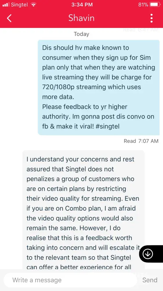It's funny. I mentioned to a colleague at work yesterday that I was going to Singtel today to discuss this and he asked me why I belong to Singtel. He said their customer service is terrible. He is a customer of a competitor and told me they have great customer service. I assured him I didn't have any issues with Singtel. That is until today. I am canceling my service and going to a competitor. And, as is easily done today, I will be sharing my incident on social media so that quickly several hundred potential or existing Singtel customers see what they can expect from your company and its employees.