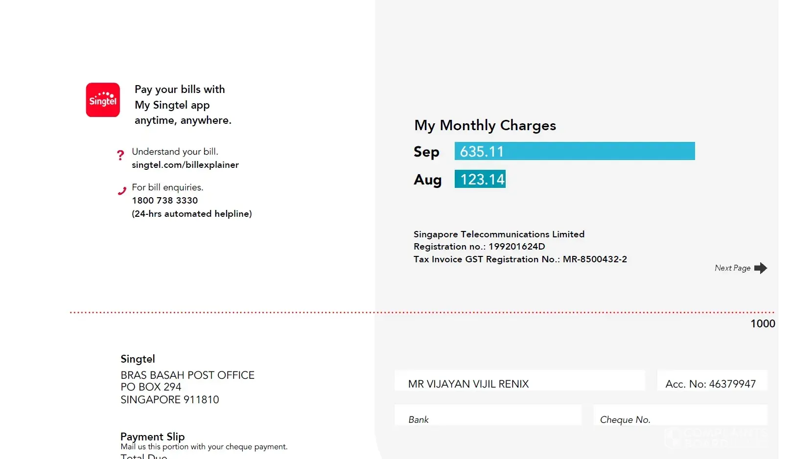 My Singtel Acct No. - [protected]