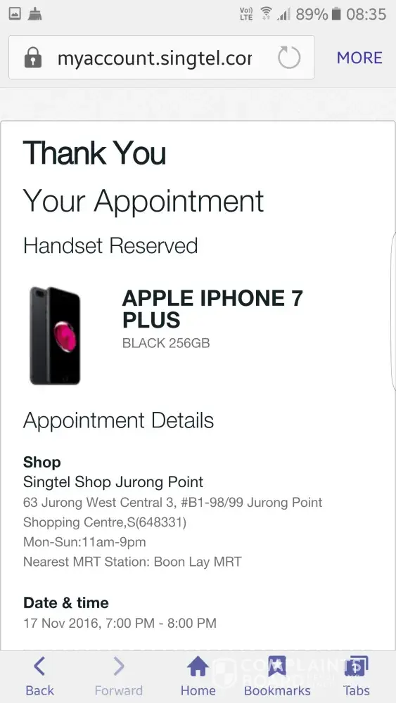 On 16 November 2016 about 8.30am in the morning, I log in to SingtelHelloShop One Pass to make a reservation. There is stock for Iphone 7 Plus 256G Black so I made a reservation. The handset is reserved for me and even an appointment to collect at Jurong Point SingtelHelloShop on 17 November 2016 from 7pm to 8pm. Around 12noon one of the Singtel staff called and said that no stock for the handset which I have reserved. What is the point of online reservation when you can reserve and given an appointment to collect. After a few hours called me no stock available. I request a call from singtel and the customer service told me she can't help me as she couldn't see any document about my reservation. I even email with an attachment to Singtel. Is he ask me to log in to singtelshop.com. com/chat. An agent Liz served me but never make a point to help me. Ask me to log in to check the availability of the handset stock myself. What is this service? Given her my name and handphone no but never want to assist me in checking. My reservation is handset reserved and now Singtel has changedvthe status to "NO HANDSET RESERVED"Totally disappointed in your service SingtelHelloShop!