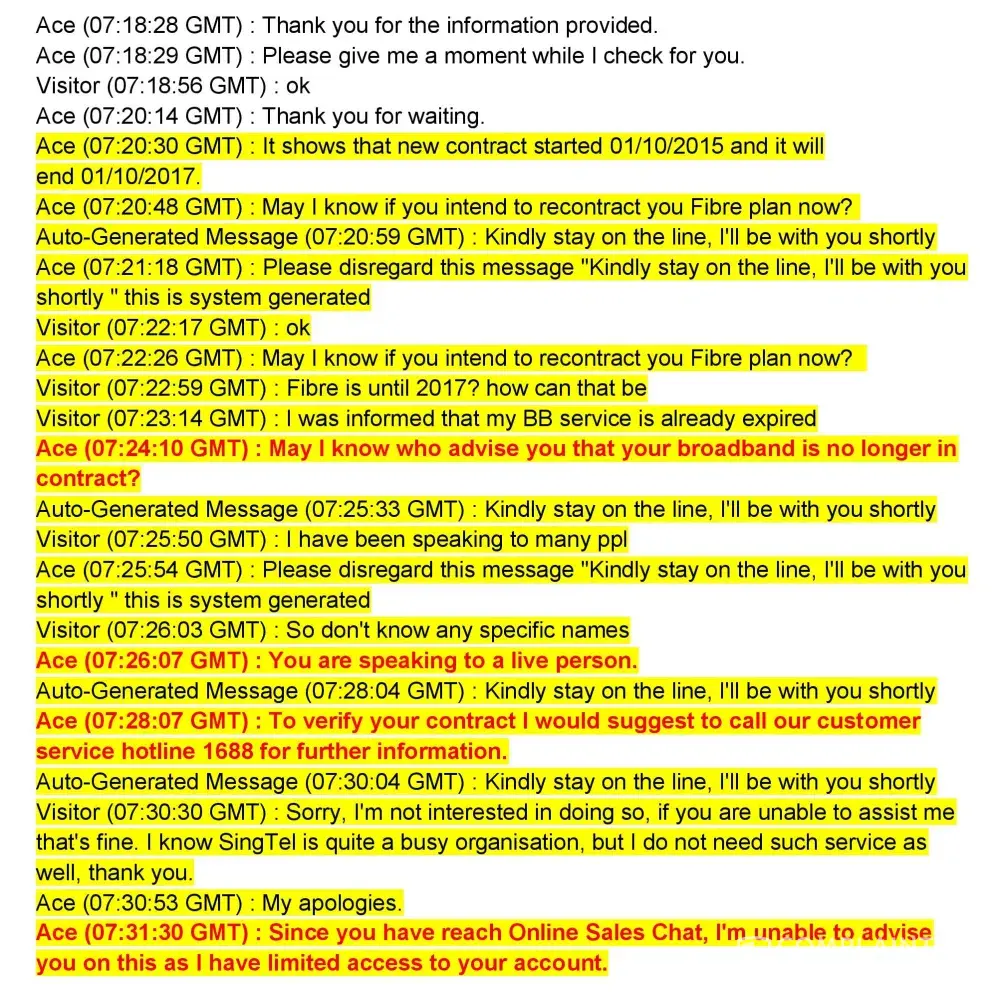 What kind of service is this? I had a chat with your sales person through your website and when I questioned him to confirm with the dates of my contract date, they simply ask me to call @ 1688, then what for are they there? And moreover, they claim to be a 'live person'. The excuse he/she gave me is that they have limited access to my account.