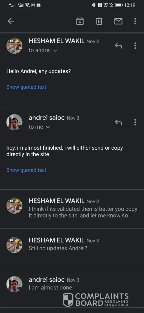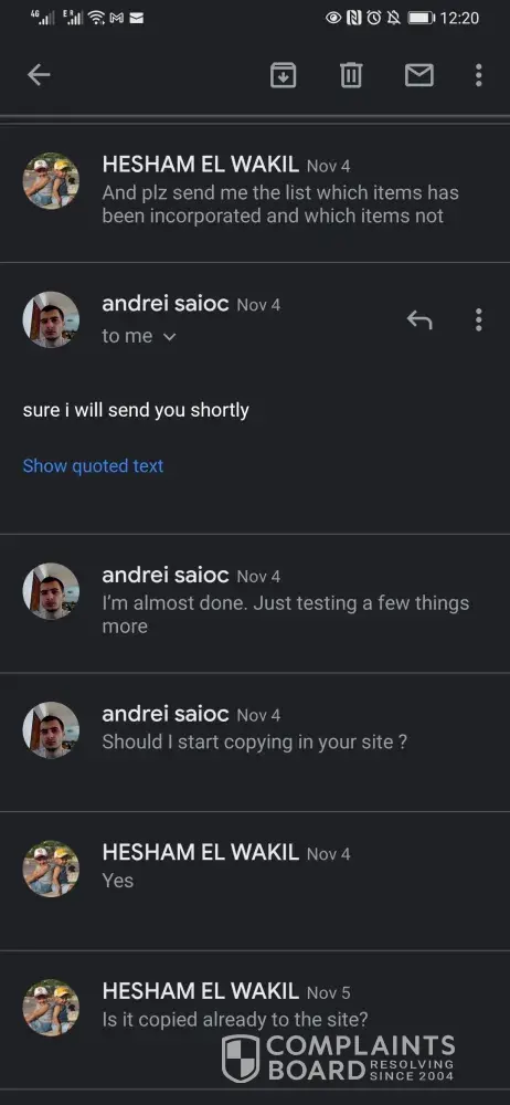 He is now no longer responding to my emails.