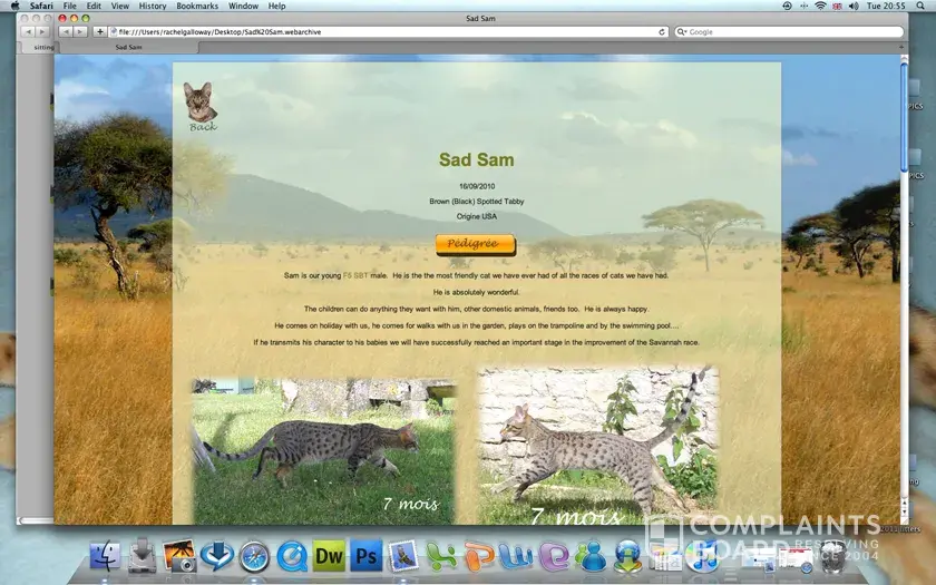 I reserved a Savannah kitten from Sitting pretty (2010/10) but this kitten died at the cattery at the age of one mouth.