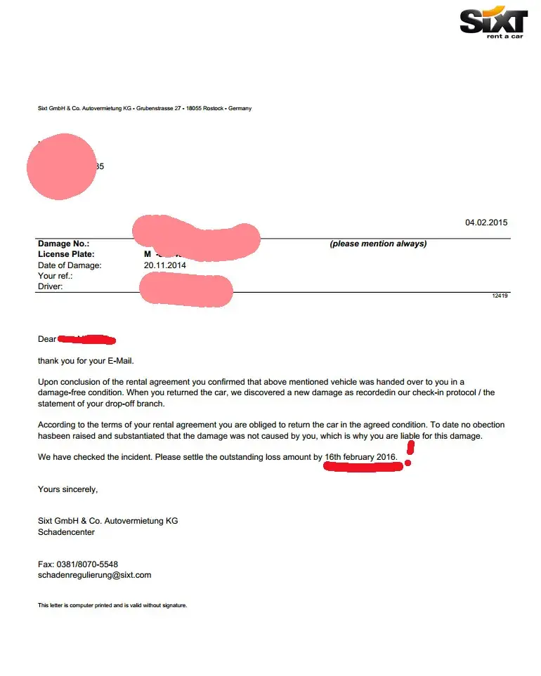 After second claimd on [protected]@sixt.com and [protected]@sixt.com. I am receiving the 3rd letter from fraud email [protected]@sixt.com: