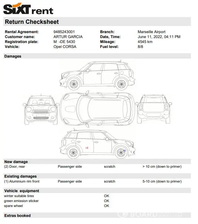 I have rented an Opel Corsa in the Sixt Marseille/France branch RENTAL AGREEMENT ([protected]).