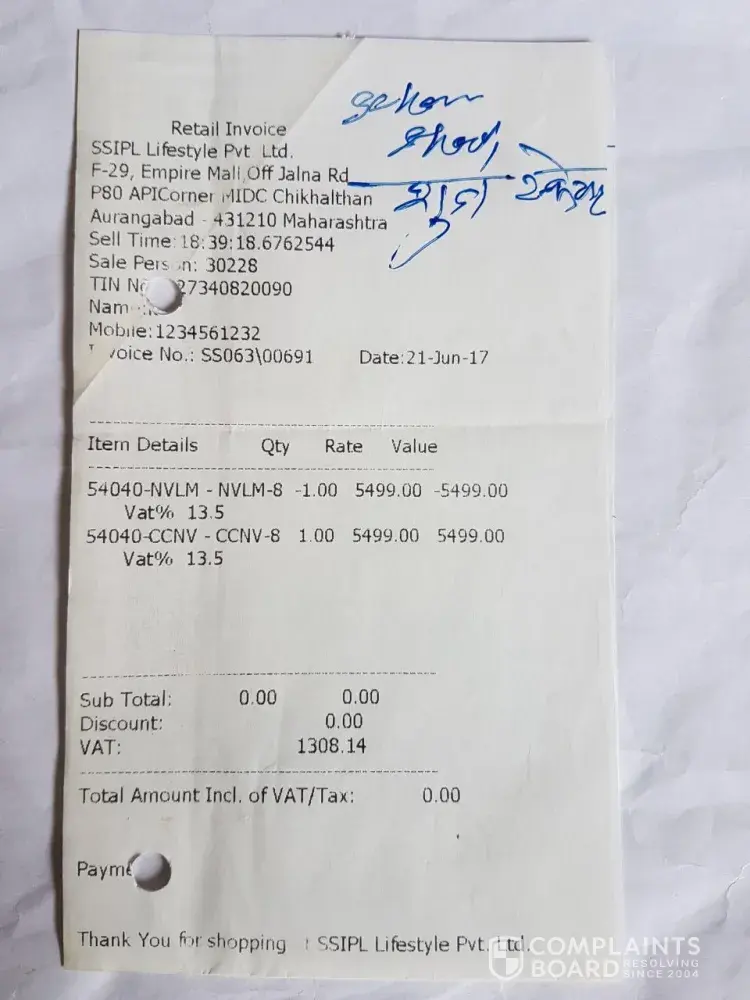 Dera sir we bought shoes on the 14 th of june from a showroom in noida dlf mall.