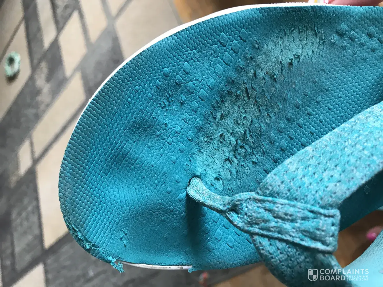 I purchased the above product from DSW, Mercer Mall, NJ on May 2nd 2017. I find excessive damage to the product in very short time. There is damage to the surface where right big toe rests and nearby area. My other foot ware doesn't show this type of damage even after extensive use. The product is being used only indoor and mostly in a carpeted home, still I see the damage. Can I have replacement?