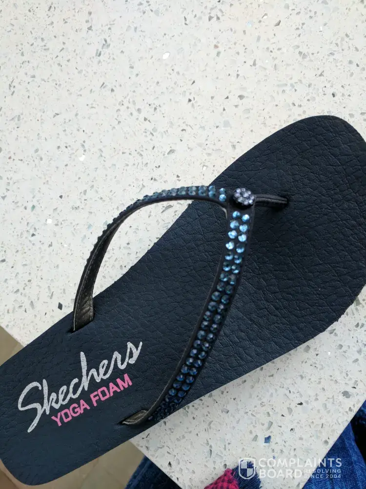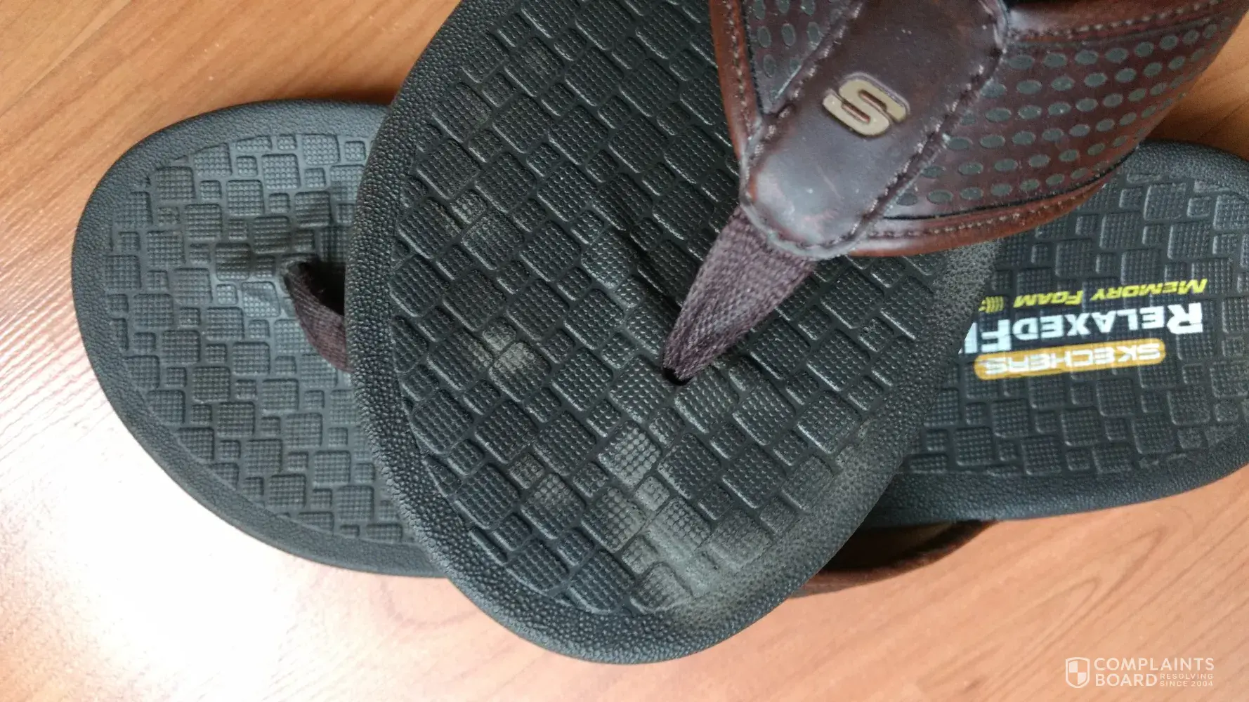 I bought these flip flops in April 2017 at a Skechers store in Bridgewater Commons Mall. I did not start wearing them until the weather got warmer late May. I am truly disappointed in how they are wearing and how they look. I have only worn them in good weather. When I went to the store to complain the only sales person did not even make a suggestion. Her response was " probably bare feet does that" Aren't flip flops meant to be worn with bare feet? I am extremely disappointed as sketchers are supposed to be a quality shoe.