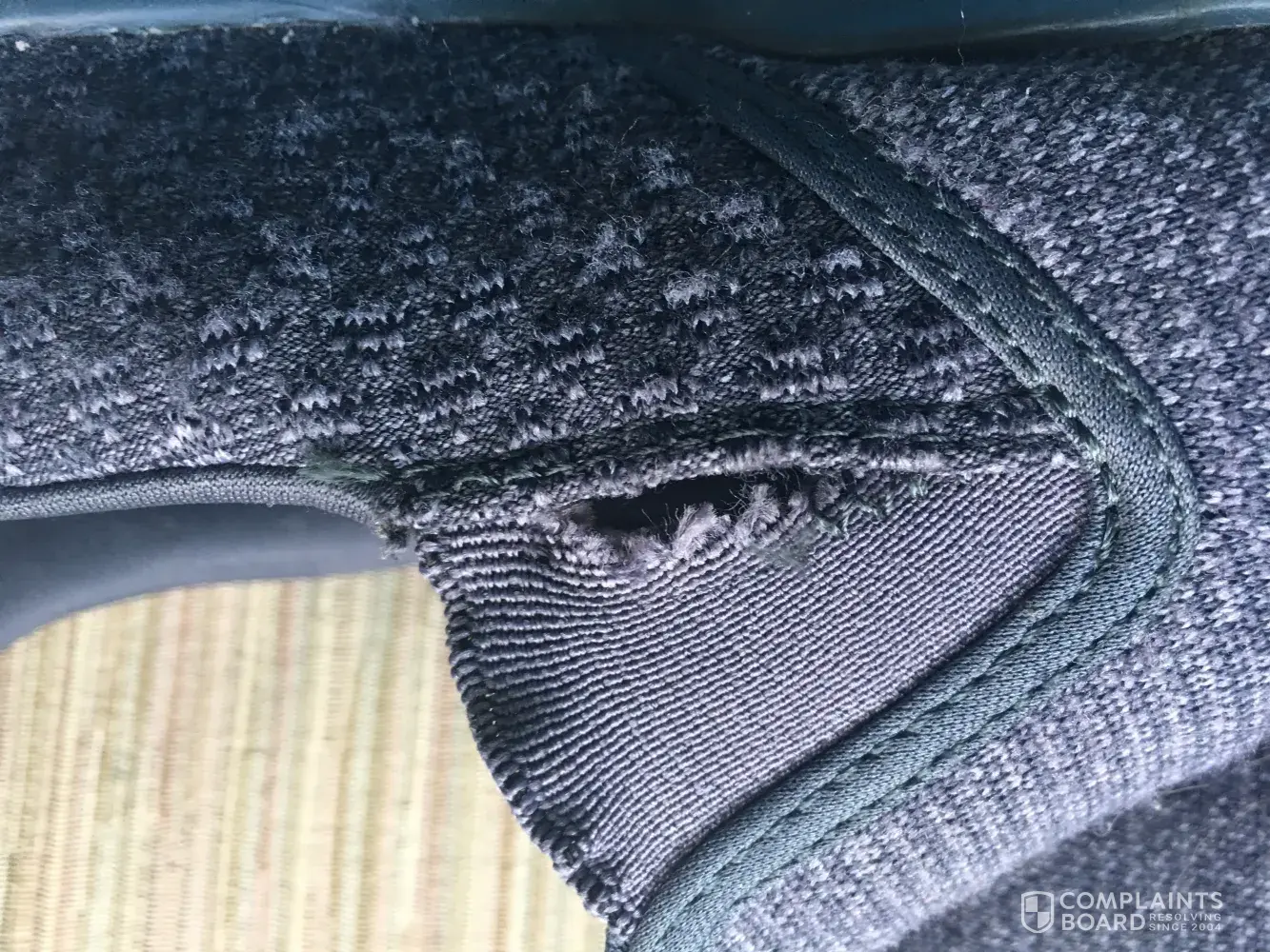 I bought a pair of sports shoes from Kathmandu Nepal in November 2016. After 3 months the fabric inside the right foot got torn . It hurt me n led to wound . I'm unable to wear them now . When I went to buy another pair last month from New Delhi . India . They told that our company is very customer firebug n would surly exchange or refund for defective product . I kindly request u to do the same . I've attached the photos