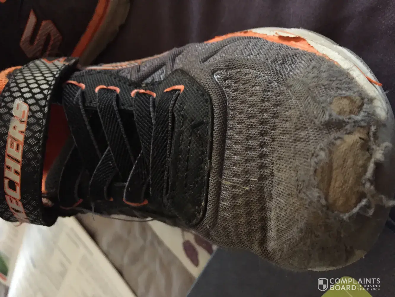 Bought a pair of boys sketchers light ups size 1 Super Z Strip the 3rd week of February 2017. by the third week of March 2017 the sneakers had tears where the bunion of a foot would be. Please see attached picture of green and black sketchers. The shoes cost me $45 plus tax at Kohls department store. Then on April 6, 2017 I bought boys sketchers size 1 and 1/2, different style. Please see the orange and back shoes in photo. Again in a few weeks the shoes had holes thru the first layer of the skin of both shoes. I paid $52 for the second pair of sneaks at Off Broadway Shoe store. In the picture the shoes look quite worn out in part because I aloud my child to wear them during soccer today in a muddy field. They were already too beat up looking for school.