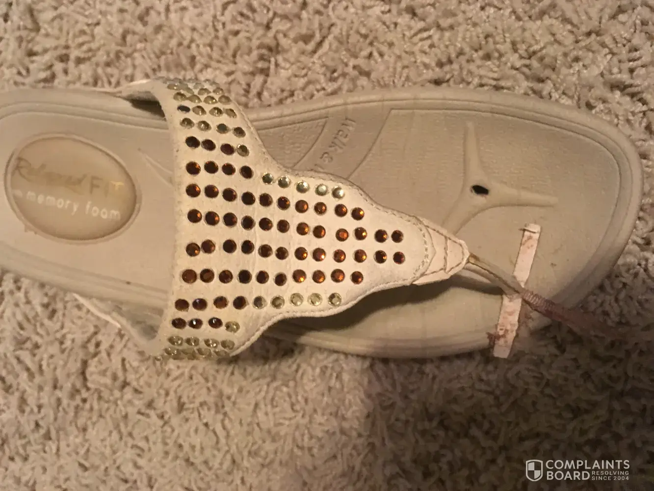 I purchased flip-flops in the Grande Prairie, Alberta Sofmoc store. They cost me $47.24 including tax and when I walk in them now which is not even a month later they squeak so it's very embarrassing to have squeaky shoes after I paid that much for them.