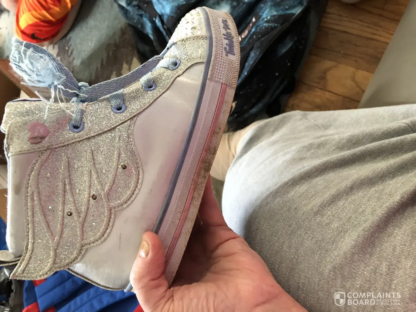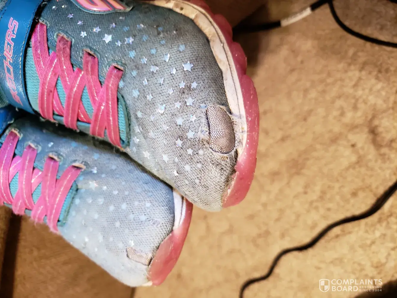 Below you will see Sketchers sneakers that I purchesed for my granddaughter merely 3 weeks ago. The sneaker have been worn 4 times and the sole has come off of them. Needless to say this is very very disappointing. We had no choice but to try and glue them as they are her only pair of shoes for school. I am asking for some type of reimbursement or replacement as I do not think the sole will stay in tack.