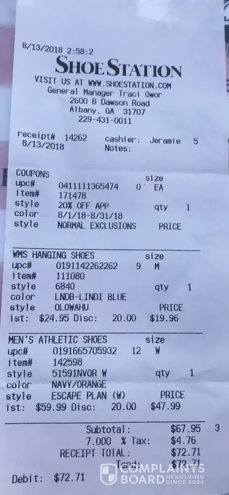 I purchased the Men's Athletic Shoes size 12W on 8/13/2018. After wearing them for 3 days they started separating on the front part at the toe area, and the sides starting separating on both sides, front and back of both shoes. I am highly disappointed with the quality and craftsmanship of these shoes. I had always heard great things about Skechers shoes, so I decided to give them a try. Now I'm rethinking my decision. I am attaching pictures of the damage they started to have just after 3 days of wearing them, along with a copy of the receipt where I purchased them. Can you refund my money or send me another pair to try?