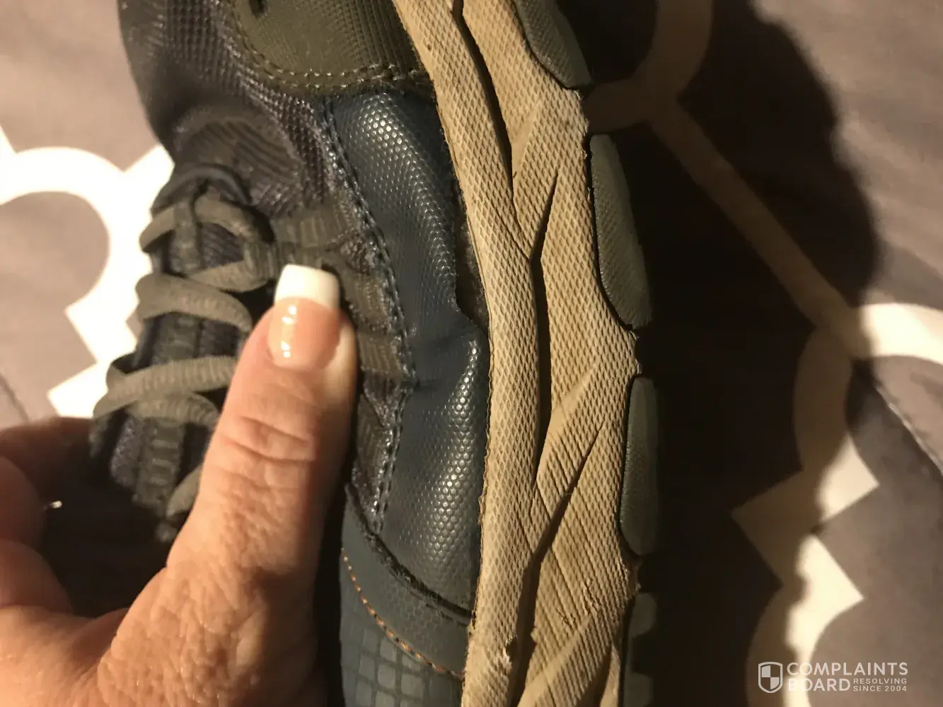 My complaint is the same as Winnie Baird's. I had four pair of Skechers Shape Ups and the sole material (that she calls side material) disintegrated when they were sitting in the closet. Skechers essentially told me to shove it.