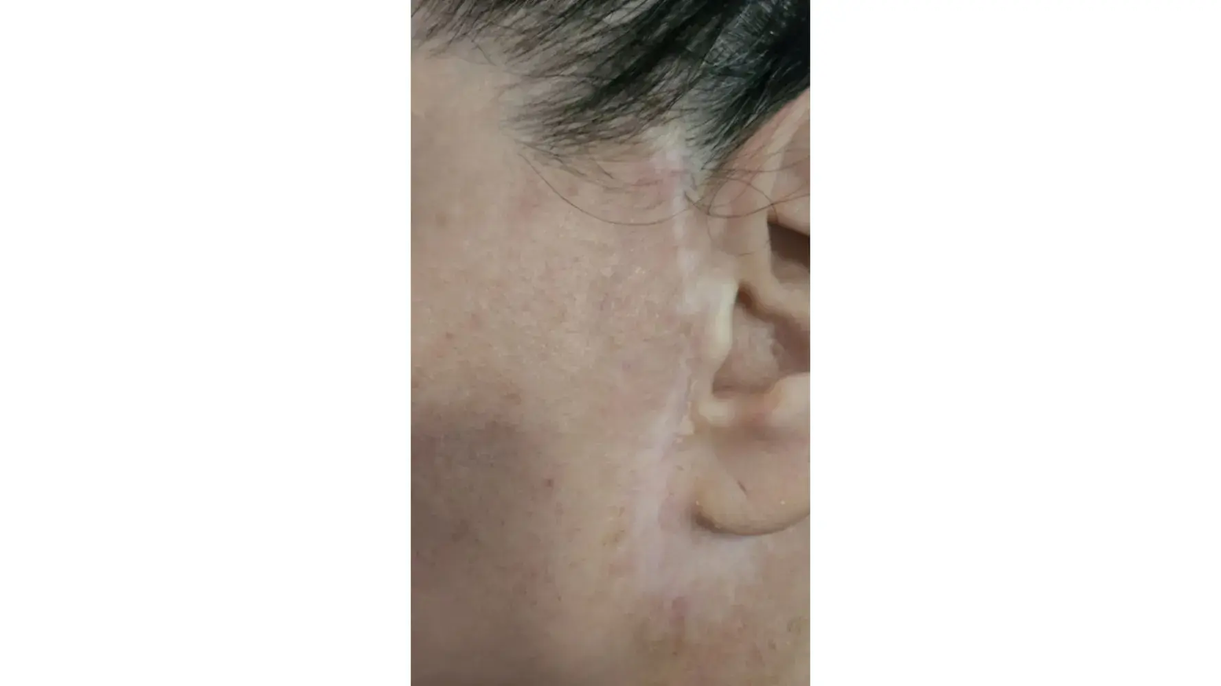 After the healing process and swelling went down, I seen what a mess I was and contacted Skin and Vein center.The scars are on the outside of my ears all the way around to my scalp.
