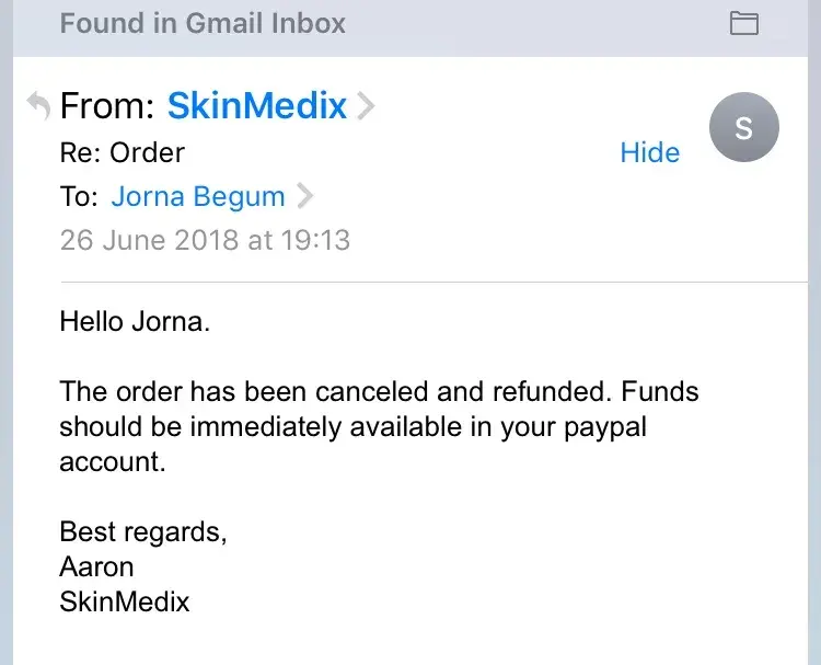 SkinMedix no refund