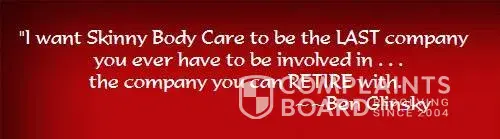 I joined skinny body care and i lost so much money. I lost over $25, 000. 00 and counting. I was promised by people like ben glinsky (Owner) , wendy royer (His assistant) , eric carten, nate bianco (Right hand person) , tim miller (Right hand person to ben) , steve anderson right hand person to ben) and many more people that i would make no less than $1618. 50 per month and after a year i would make no less than $10, 000. 00 per month. I don't have to enroll one single person. They say this on their conference calls every night, which is another lie. It is not true. I enrolled close to 75 to 100 people in my group and everyone that i personally enrolled and signed up, has all dropped out because skinny body care is one of the biggest scams of this century. Also my up line is all gone too. They all agreed that skinny body care is a scam, and they did not want not part of it and once there is a class action lawsuit i am sure people will get their money back. Also the skinny fiber is really not all that. This product can be bought in any major vitiam store nation wide. Again do not become another victim of skinny body care. These people owe everyone their money back. People also need to know that this skinny fiber product does not really work like they say it does. I did take the pills, and it is only mind over matter. It did not prevent me from eating more. So don't be fooled by these people or this company. Once everyone knows, i am sure no one else will be buying from these con artist any longer.
