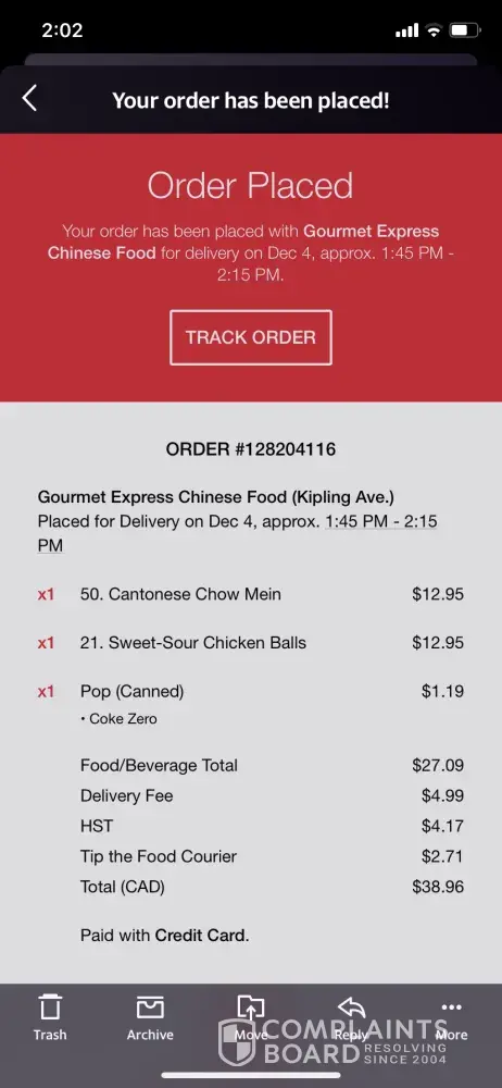 Will never ever ever in a million years put myself through that hassle again. They deliver make it almost impossible to reach them in the event of a problem. They seem to do this intentionally so you give up on getting reimbursed. If a food place uses skip the dishes I suggest you skip on over to another food place. They are an absolute disgrace in customer support/service & their payment platform failed on their end of things and they couldn't fix the problem. They told me in chat that my $ was ‘lost in a cyberspace phantom zone'.