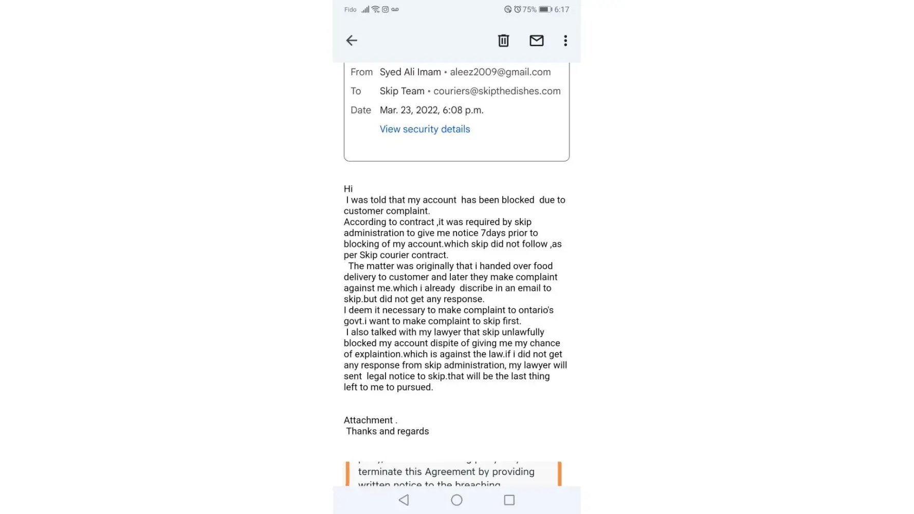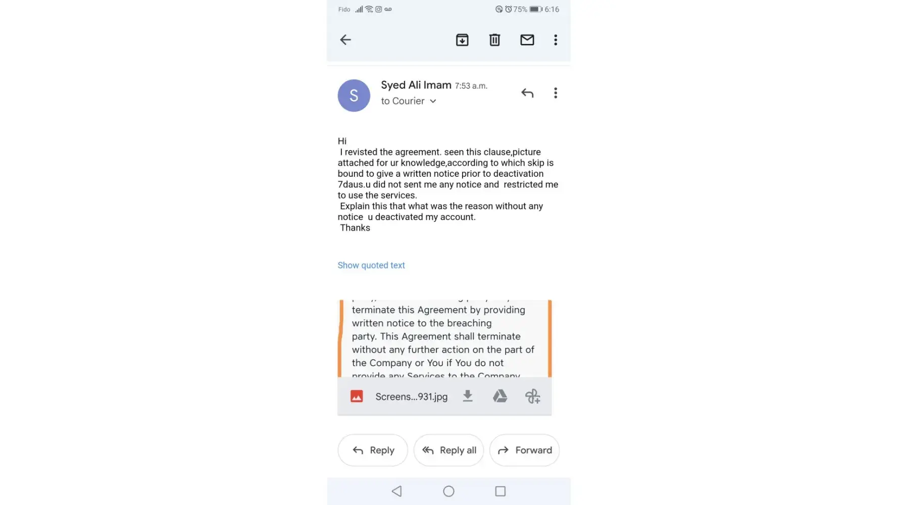As per contract ,i shall be given a notice of 7days prior to account revoked. I try to email them but no reply from skip