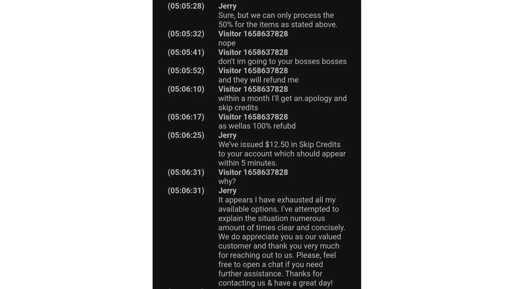 Jerry also refunded me 50% AFTER I told him not to and proceeded to tell me he's done everything he can.